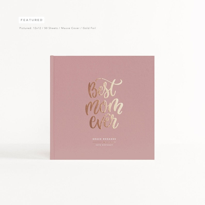 This stunning tribute book is the perfect way to honor Grace Rhoades on her 50th birthday. The soft mauve cover is elegantly accented with a playful, hand-lettered "Best Mom Ever" in brilliant gold foil, making it a beautiful and heartfelt centerpiece for the celebration. Designed to gather loving messages, favorite memories, and expressions of gratitude from family and friends, this guest book will become a priceless keepsake that she can revisit and cherish forever.